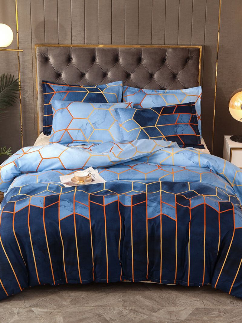 2/3kom Geometrijski Set Posteljine Plavi Zlatni Kompleti Navlaka Za Poplun Poliesterska Za Krevet Jastučnica Queen King Size