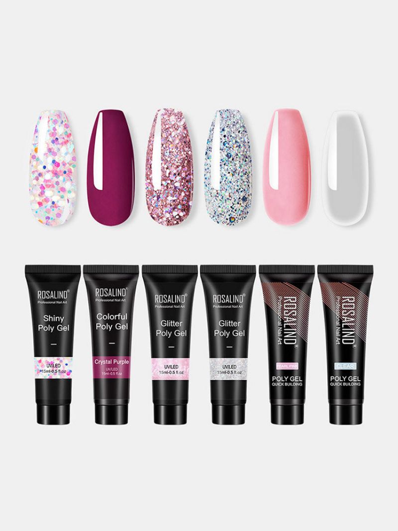 6 Kom Sjajnih Poli Svjetlucavih Gelova Za Nadogradnju Manikura Nails Art Design Set Polutrajnih Uv Gel Lakova Za Nokte