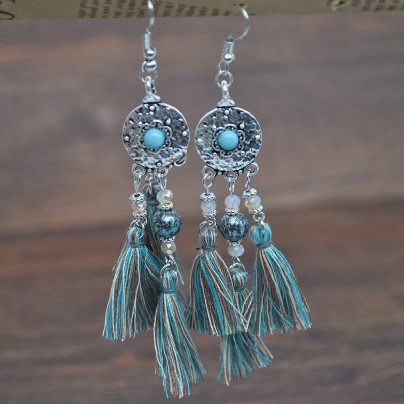 Boemske Tirkizne Naušnice Metalni Disk S Privjescima U Boji Ženski Nakit