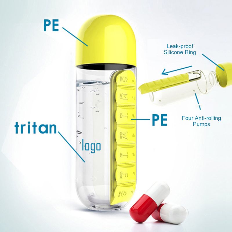 Ova Bočica, Napravljena Za Čuvanje Tableta I Držanje Vode, Koja Je Izrađena Od Visokokvalitetne Plastike I Pe Materijala, Koji Je Čvrst, Netoksičan I Otporan Na Lomljenje. Odvojivi Dizajn Kućišta Za Pilule, Protuklizne Izbočine I Delikatna Izrada Uvelike Bi Vam Pružili Praktično I Najbolje Iskustvo Korištenja U Klasi.