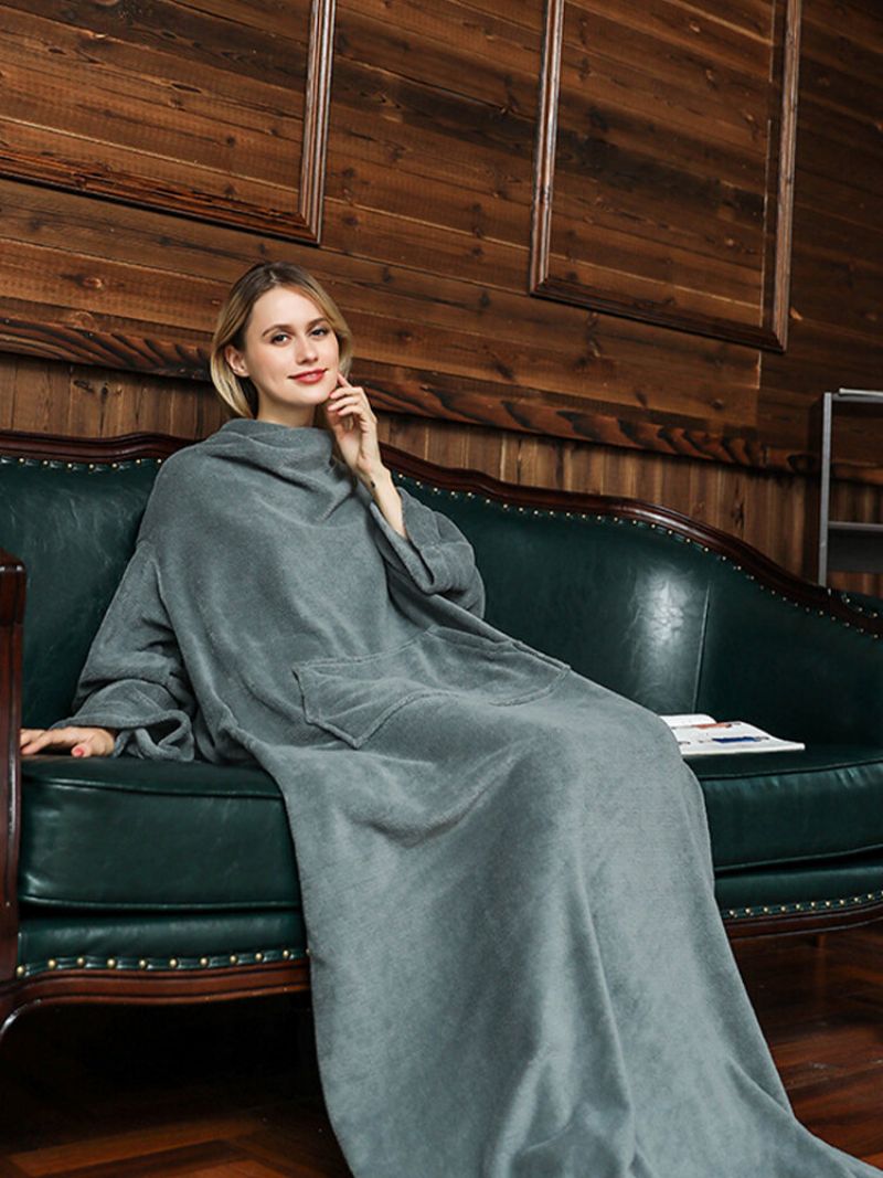 Obična Deka Za Kauč Zimska Topla Mekana Nosiva Od Flanela S Rukavima Putna Plišana Lijena Duga Za Tv