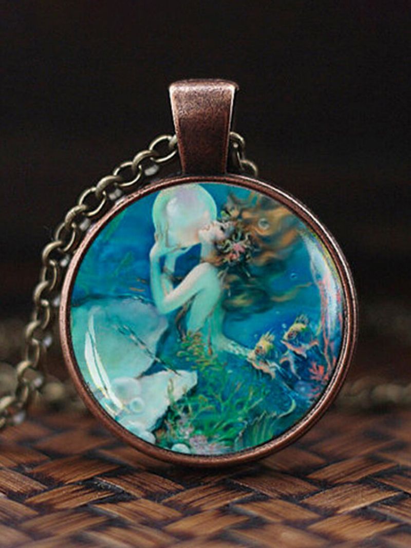Prilagodljiva Ogrlica S Planinskom Morskom Ribom Za Muškarce I Žene S Privjeskom Od Tiskanog Stakla