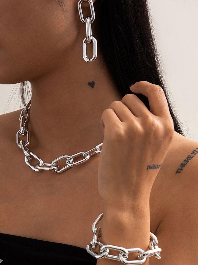 Punk Ccb Set Ogrlica S Resicama S Debelim Lancem Metalna Geometrijska Šuplja Narukvica