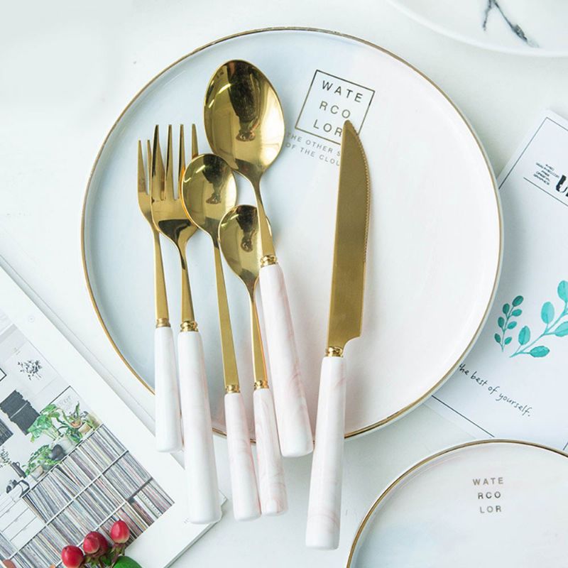 Set Pribora Za Jelo Od Nehrđajućeg Čelika Posebno Napravljen Za Jelo, Ovaj Pribor Za Jelo Izrađen Je Od Visokokvalitetnog Nehrđajućeg Čelika 304. Koji Je Čvrst I Izdržljiv. Moderan Rukohvat S Mramornim Uzorkom I Delikatan Postupak Usvojeni Su Kako Bi Se Osiguralo Iskustvo Korištenja Najbolje U Klasi, Kao I Dobar Izgled.