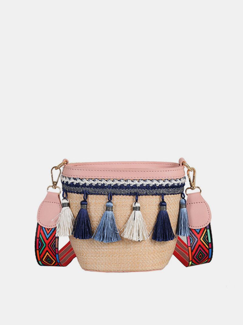 Straw Tassel Bucket Bag Torba Na Rame Za Žene