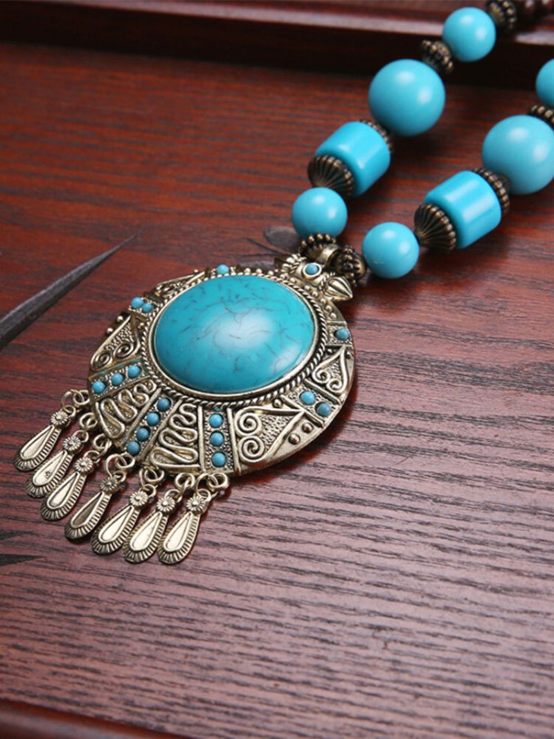 Vintage Boemske Ogrlice S Resicama Okruglog Oblika Od Legure Drvene Smole