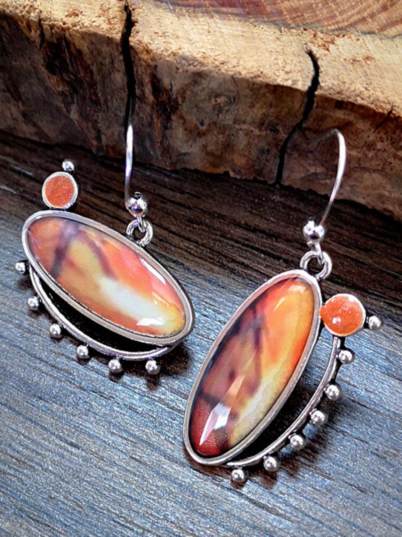 Vintage Geometrijske Naušnice U Obliku Puža S Umetnutim Obojenim Kamenjem Od Legure