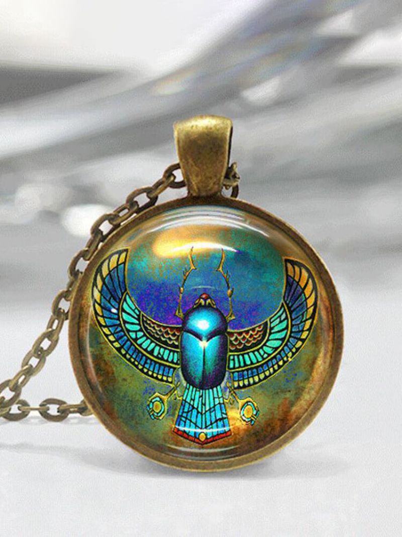 Vintage Staroegipatska Ženska Ogrlica S Privjeskom I Džemperom S Otisnutim Staklom