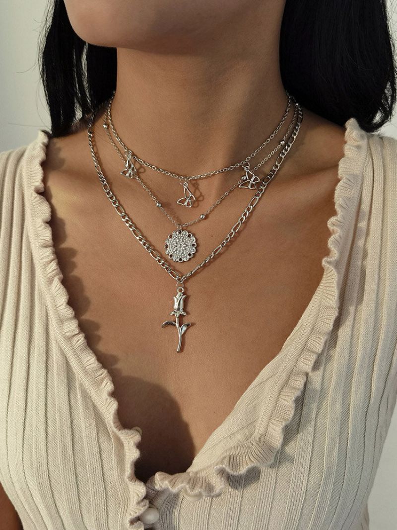 Vintage Višeslojna Ogrlica S Cvijetom Ruže Temperamentna Šuplja S Kićankama