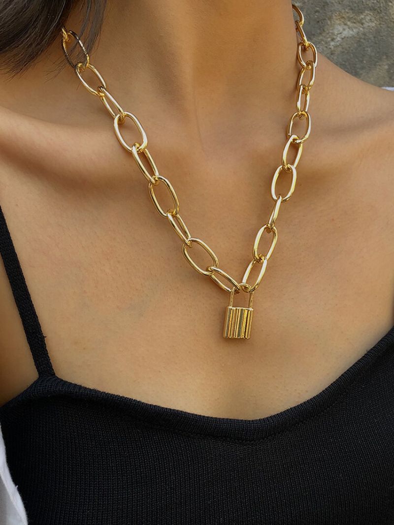 Višeslojna Ljubavna Ogrlica U Obliku Lokota S Pretjerano Debelim Lancem Od Vintage Legure