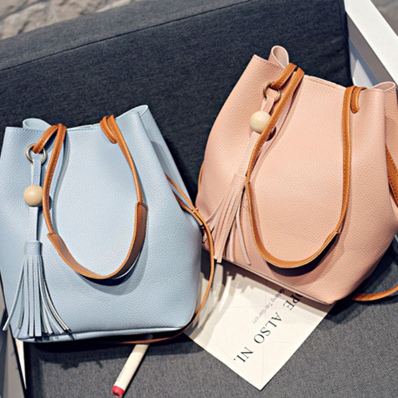 Ženska Bucket Torba Mekana Pu Koža Veliki Kapacitet Rese Ukrasi Za Rame Čvrsta Za Nošenje Preko Tijela Ženski Jednostavni Dodaci 2 Kom.