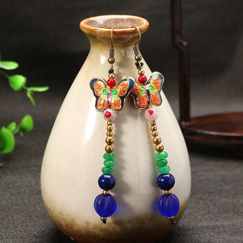 Ženske Etničke Naušnice Retro S Resicama Od Leptir Ahata